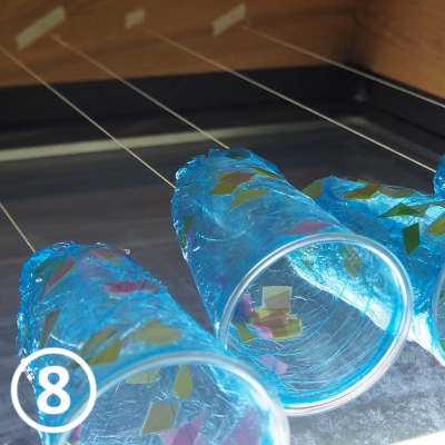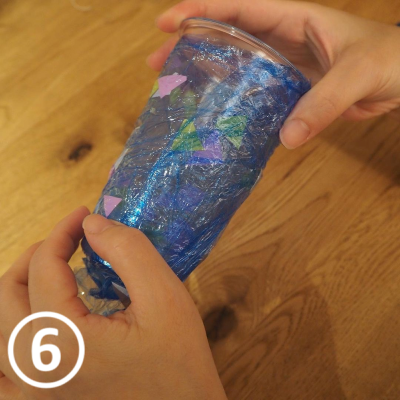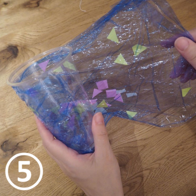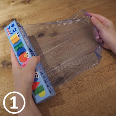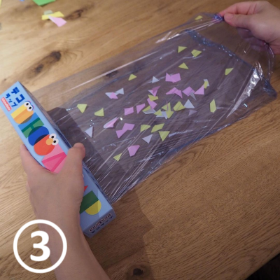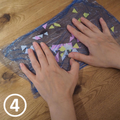 カットしたデコラップを上から被せて押さえつけて、デコラップ同士で折り紙を密着&密封します。糊・テープは不要です。