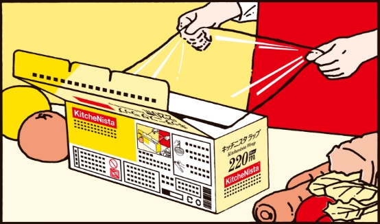 ご家庭で広く使われている、箱の内側(ふた側)に刃が付くタイプのキッチンラップ。手に持ちやすいよう、箱をコンパクトに設計しています。ご家庭からプロの厨房まで、便利に使えるサイズラインナップをご用意。