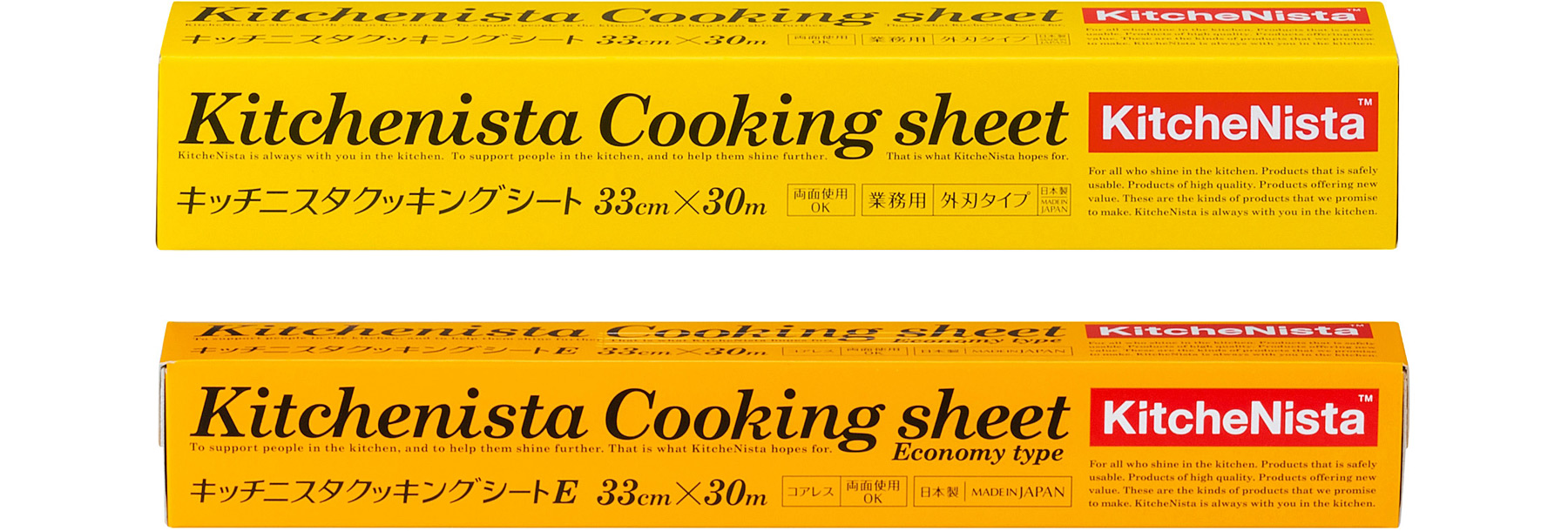 ※外刃タイプ(キッチニスタクッキングシート)はBOXタイプ(キッチニスタクッキングシート E type )に比べ 、より耐油性、耐水性、剥離性に優れた密度の高い紙を採用しています。