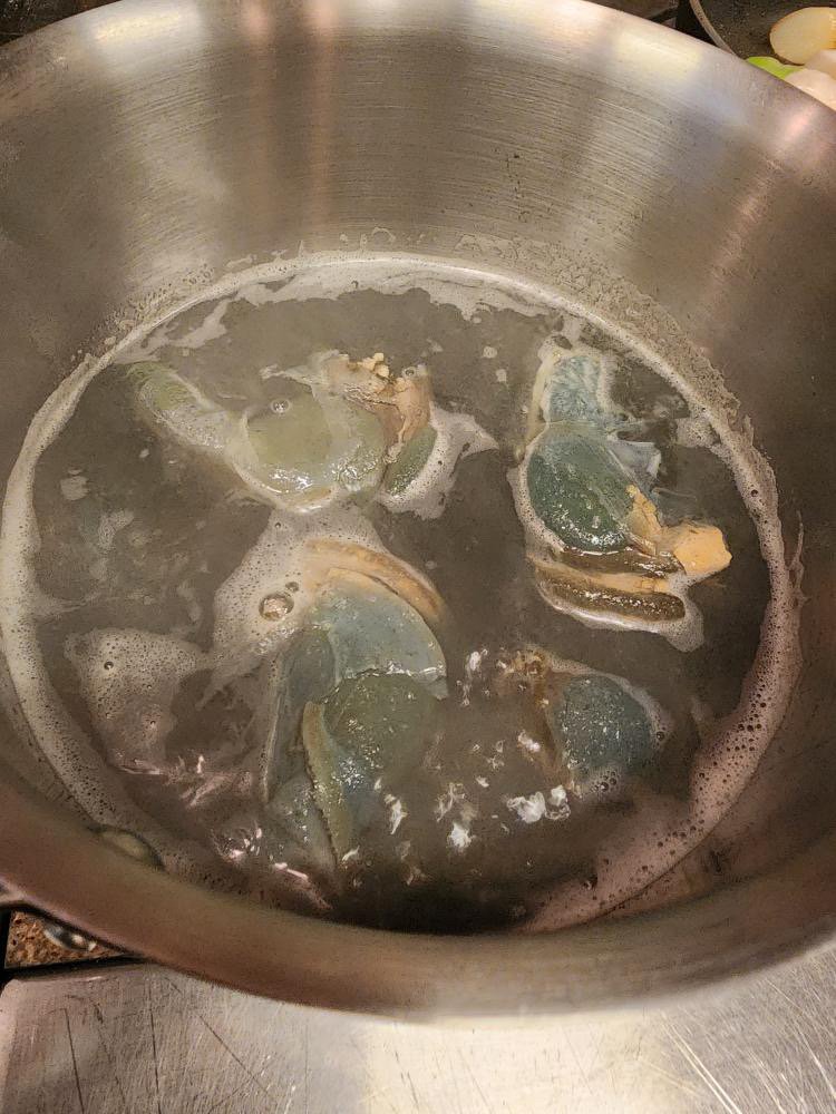 (2)肝はアワビの煮汁と一緒にミキサーにかけて濾します。