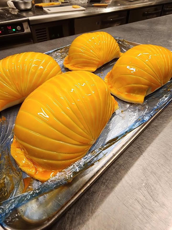今回は、アワビのパイ包み焼きの仕上げです。パイ包み焼きを上手く包むコツは、パイ生地がだれないように手早く作業する事です !
